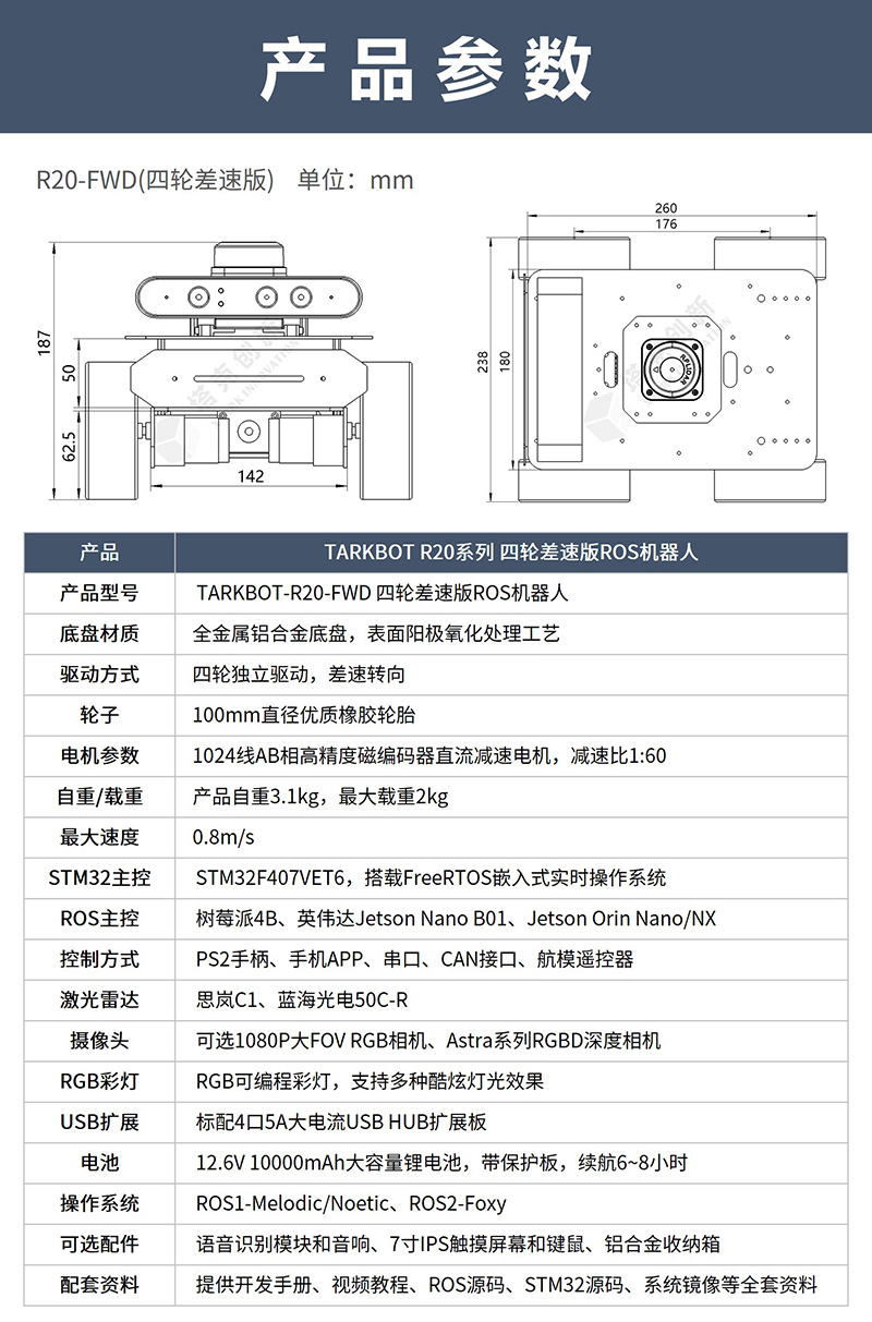 TARKBOT-R20-FWD 四輪差速ROS機(jī)器人